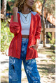 Kadın Turuncu Kapüşonlu Beli Büzgülü Fermuarlı Cepli Yağmurluk Rm2999